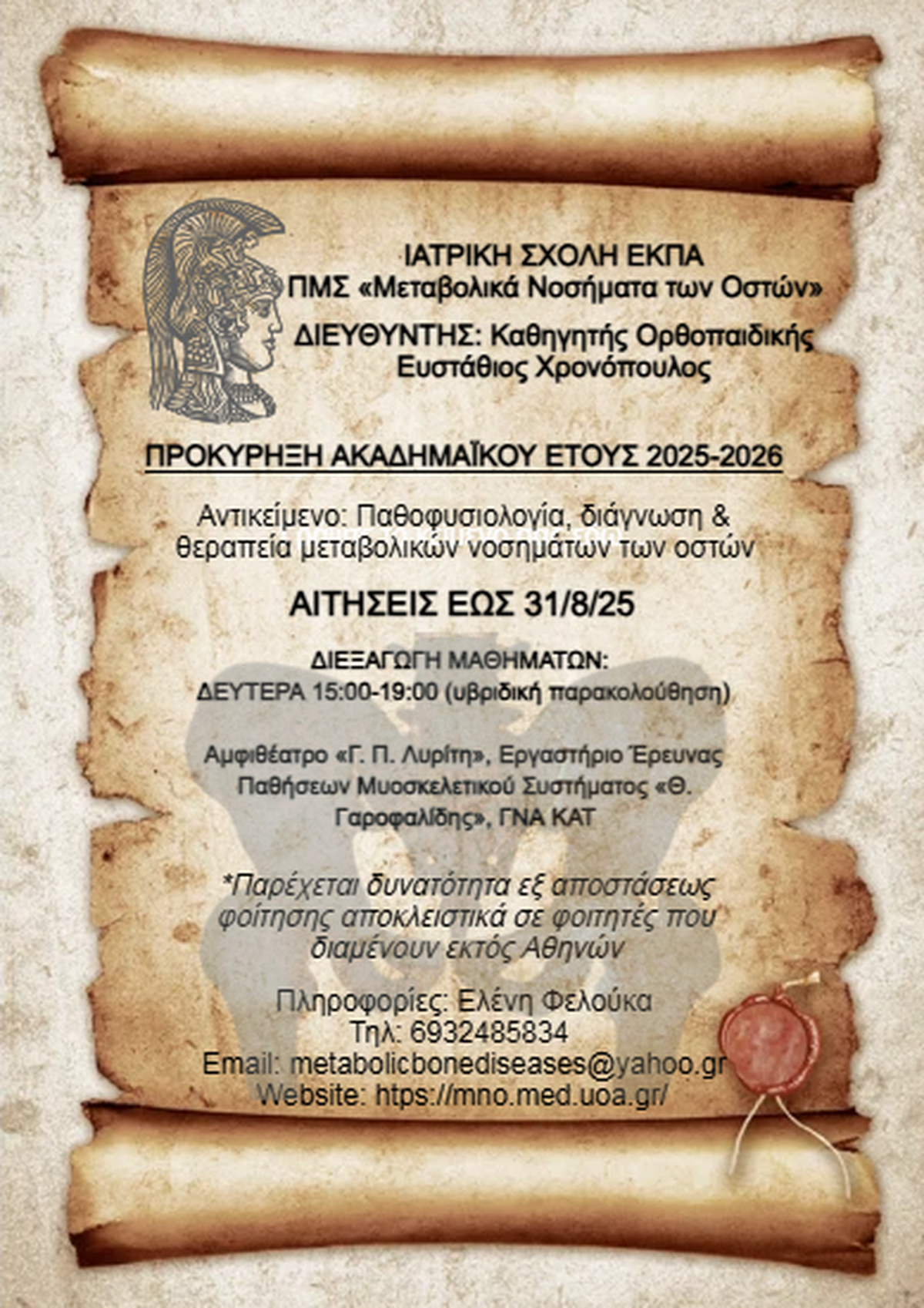 Ο μεταβολισμός των οστών αποτελεί γνωστικό αντικείμενο ιδιαιτέρου ενδιαφέροντος τις τελευταίες λίγες μόνο δεκαετίες. Στην Ελλάδα, από τον Οκτώβριο του 1987, ιδρύθηκε από ένα μικρό, αλλά κρίσιμο αριθμό συναδέλφων, η Ελληνική Εταιρεία Μελέτης Μεταβολισμού των Οστών (EEMMO) με μέλη επιστήμονες υγείας όλων των ειδικοτήτων. Από τότε παράγεται συντεταγμένη γνώση και έρευνα με συνέπεια, συνεχή ανάπτυξη και πύκνωση των τάξεων όσων ασχολούνται με το αντικείμενο.
